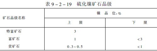 硫化鎳礦石的品級標(biāo)準(zhǔn)列于表9-2-19。