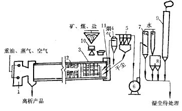 根據焙燒階段物料處理方法的不同,離析法分為“一段離析”和“兩段離析”兩種類型。一段離析法是將礦石、食鹽及還原劑混合后一并進入焙燒爐內(大部分采用臥式回轉窯),物料的加熱和離析都在同一設備中進行。兩段離析法又稱“托爾科”法,是先將礦石預熱至反應溫度,然后混入適量的食鹽和還原劑進入離析反應器內離析。現在的生產表明,兩種離析法都能達到較高的選別指標。